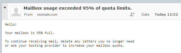 Mail users receive email notifications when more than 95% of their mailbox disk space is occupied.