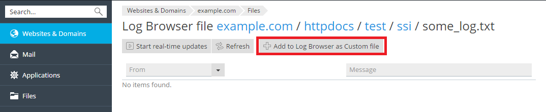 In addition, you can add any custom log file from you web site directory to track it in the domain log browser, as described below.